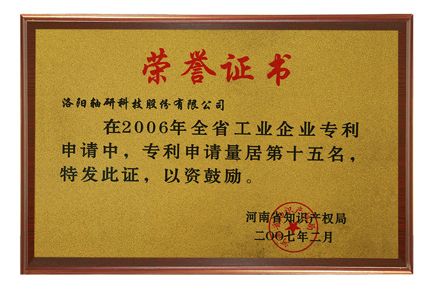 在2006年知識產(chǎn)權(quán)工作中成績突出,被評為河南省知識產(chǎn)權(quán)系統(tǒng)先進集體